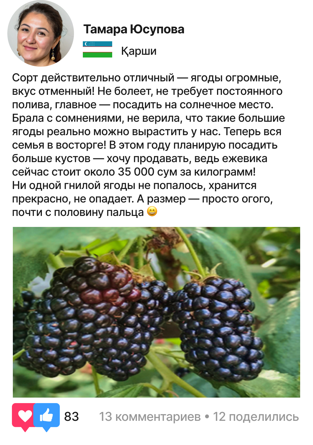 «Ежевичное дерево от ООО “Ягодная ферма” — это то, что обязательно должно быть на вашем участке!»