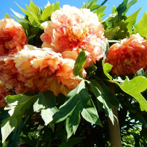 Ажойиб Као дарахти пиони 120-150 см баландликка кўтарилиши мумкин, унинг диаметри 20-25 см бўлган катта, зич қўшалоқ гуллари ёқут, бинафша ва маржоннинг ажойиб соялари билан ҳайратда қолдиради. Май ойида 8-15 кун давомида мўл-кўл гуллайди ва боғни энгил баҳаратлı ҳид билан ўраб олади.