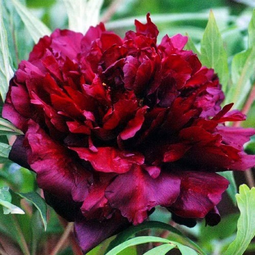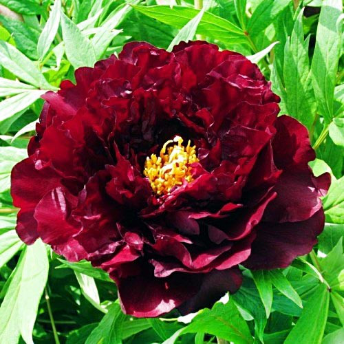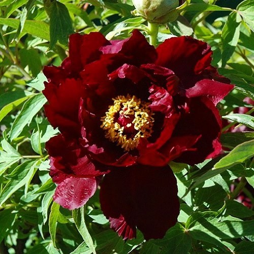 1947 йилда етиштирилган кўп йиллик дарахт пиони қора пантера ўзининг ёрқин гўзаллиги билан гул севувчиларни хурсанд қилишдан тўхтамайди. Унинг 1,5 метргача ўсадиган кенг буталар бутун периметри бўйлаб мўл-кўл кўкатлар билан қопланган, асосий пояларни қоплаган. Зич барглар орасида сарғиш марказли ва нозик хушбўй ҳидли қуюқ қизил ярим жуфт гуллар ажойиб кўринади. Уларнинг диаметри 10 дан 16 см гача ўзгариб туради, ёритилган жойга экилган, ўсимлик апрел ойининг ўрталарида гуллайди. Ҳар бир намуна 15 сантиметрлик тешикда ўсиш нуқтасига кўмилади. Ушбу пионларнинг ўзига хос хусусияти уларни контейнерларда этиштириш қобилиятидир. Бу нав қишки совуққа яхши тоқат қилади.