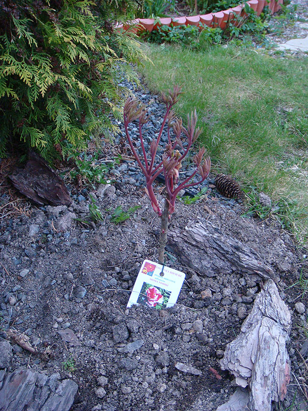 Экиш: пионни тешикнинг марказига қўйинг, илдизларни тўғриланг (агар пионнинг очиқ илдиз тизими бўлса) ва тупроқ билан ёпинг. Илдиз бўйни тупроқ сатҳидан 2 см пастда эканлигига ишонч ҳосил қилинг.